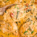 This Italian-inspired dish was served with pasta that weekend, but this Tuscan Chicken recipe with sundried tomatoes actually goes so well with rice or potatoes too, so I decided to let you choose how you want to serve it! I’m told the flavors are very similar to the Cheesecake Factory Tuscan chicken, so if you’re a fan of that dish, be sure to give this one a try!
