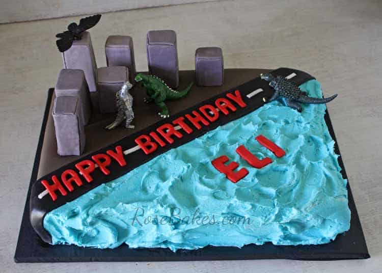 The fins were made with gum paste, but you could also do them with fondant and add Tylose. We used Wilton gray from the Transformers set to get the color. When I try to use black gel to get gray, it often turns out looking purple, so I recommend the gray gel.