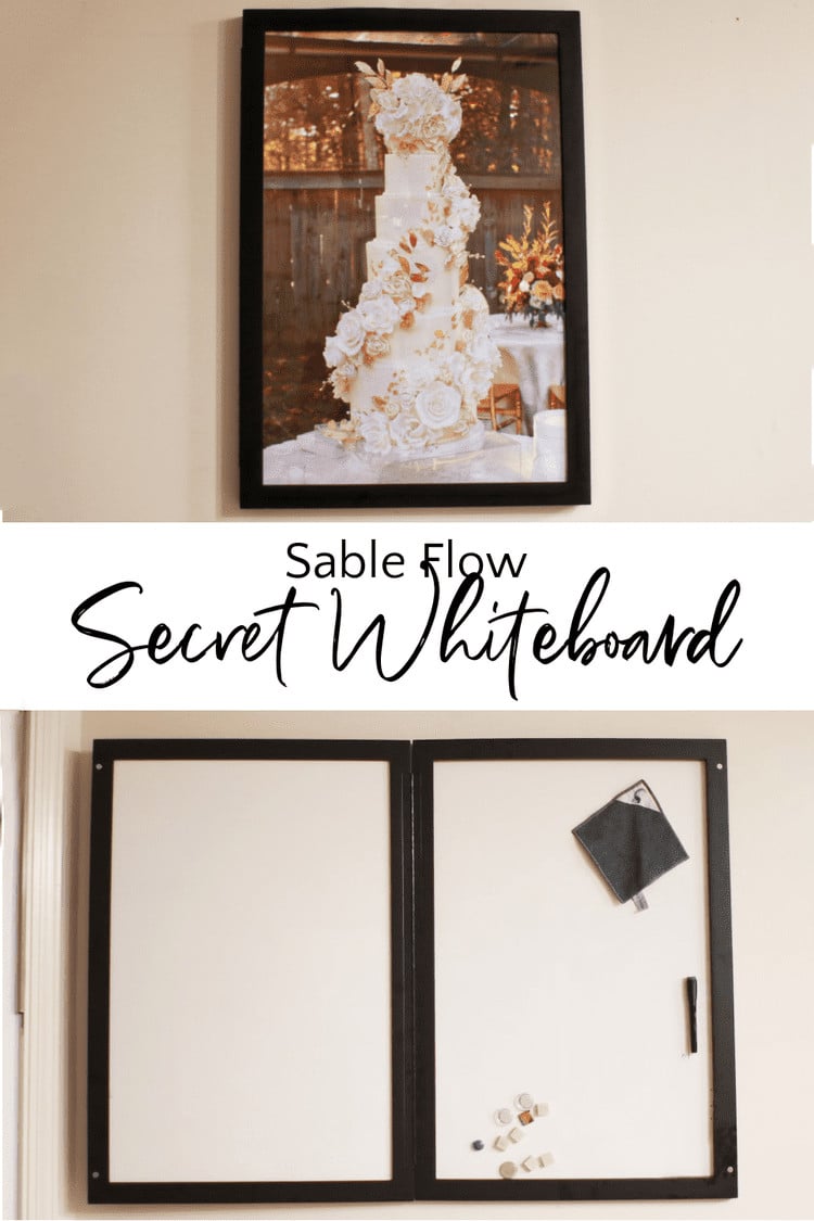 When Sable Flow reached out to me about trying one of their Secret Whiteboards, I jumped at the opportunity! I love the concept of this board so, so much! Now when I have clients in my kitchen for tastings, I can close my whiteboard and have one of my cakes on display!