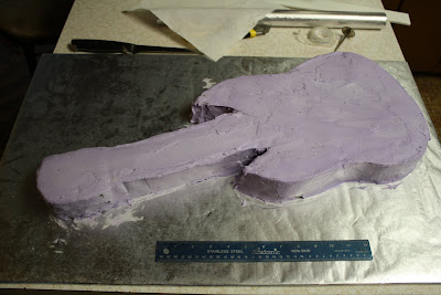 Then I got ready to add “Happy Mother’s Day” to the guitar cake (at the request of the customer). Well, my first idea was to roll out some dark purple fondant and cut the letters out (I don’t write with buttercream very well, so I just thought it would look nicer). This is where my trouble started.