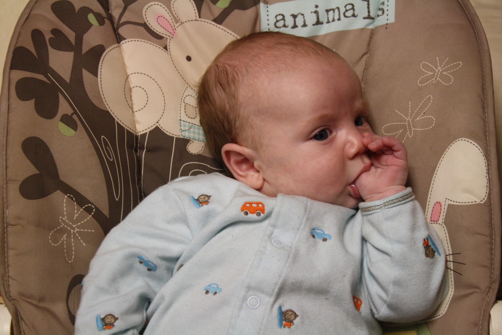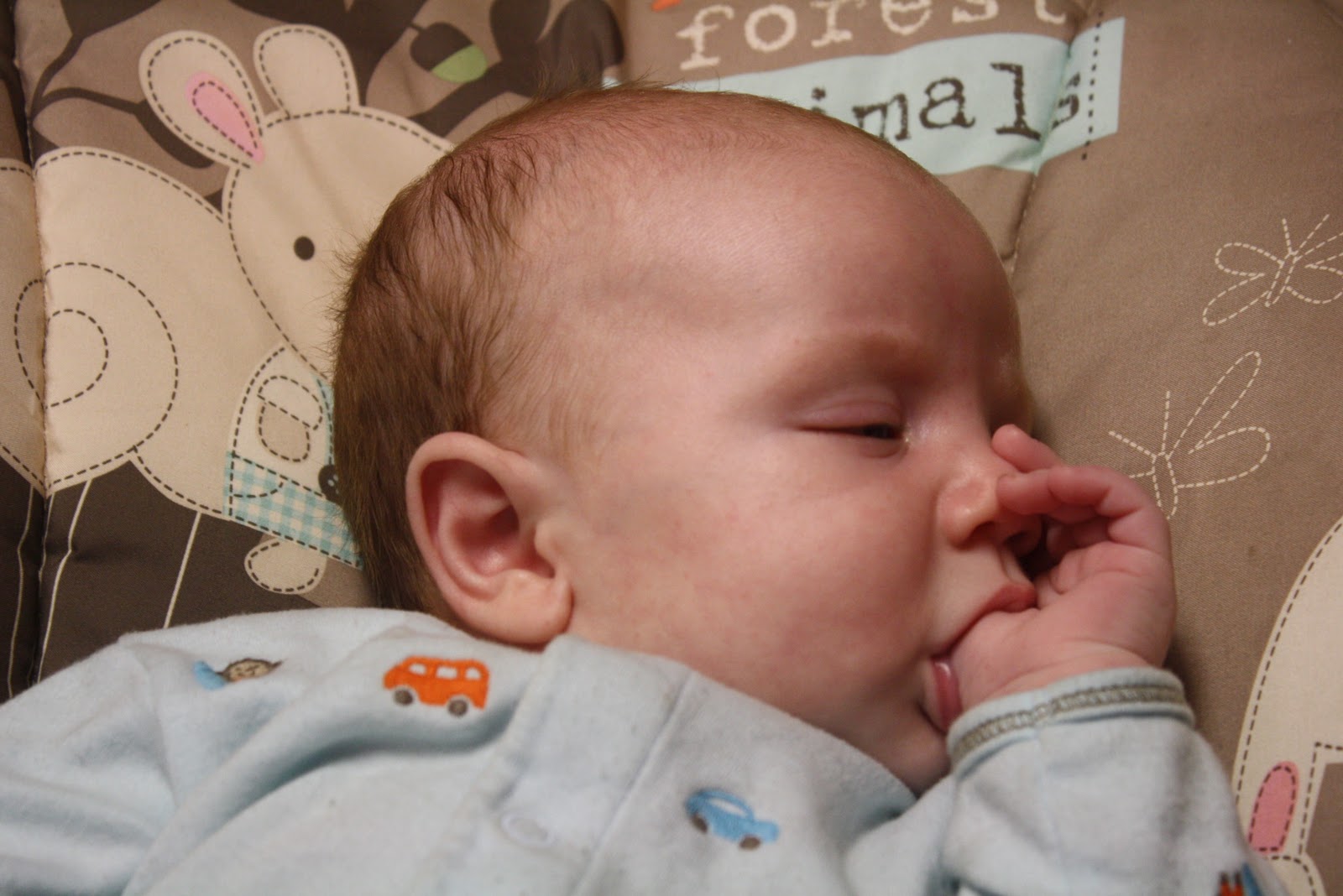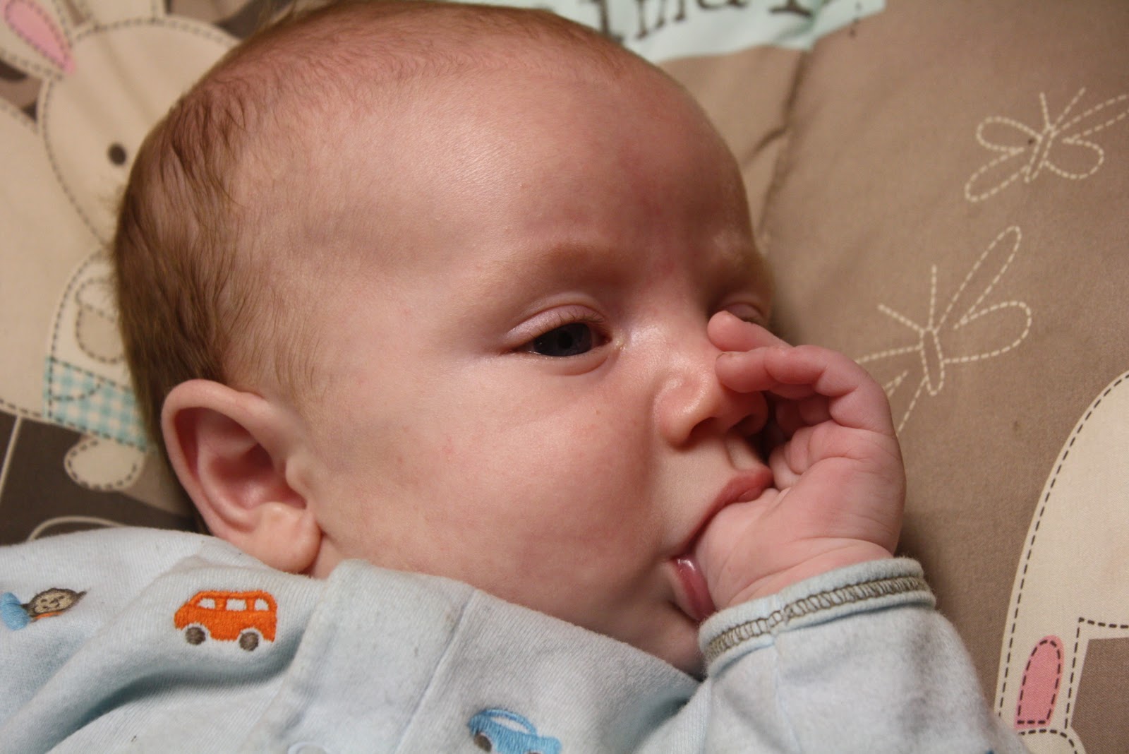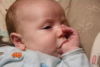 You should have a warning label on this post that you may get baby fever! He is so precious! I love that he sucks his thumb, how cute is that!