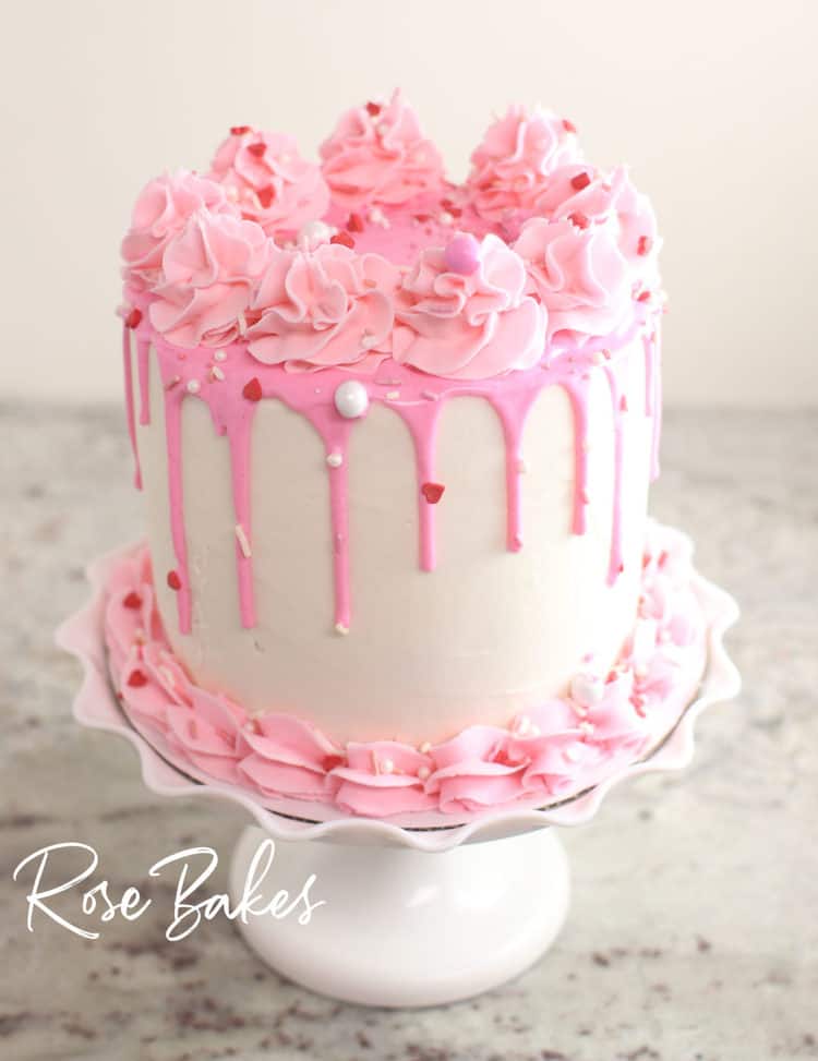 This pink cake is so perfect for Valentine’s Day! The cake batter on the inside was also pink so it was festive on the inside and outside!